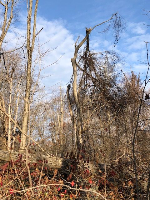 November 21, 2020. Saturday. A gift day, warm, sunny, almost t-shirt weather at Thanksgiving. Into the woods. To the Supply Ponds, the Town of Branford’s magnificent central preserve managed by Branford Parks and Open Space Authority. I had not been there for months, not since the August rainless tropical storm, not since the August microburst three weeks later. Expecting a lovely walk in the autumn woods. Greeted by devastation.
