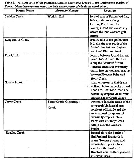 The freshwater resources of Branford include a variety of streams,