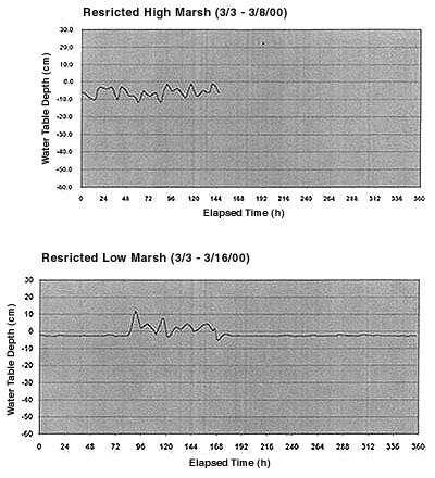 table fluctuations for the high restricted marsh were larger than the