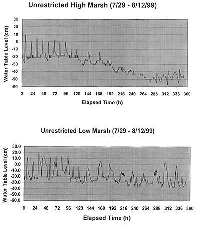 reflected in the water table changes for the unrestricted marsh. As expected,
